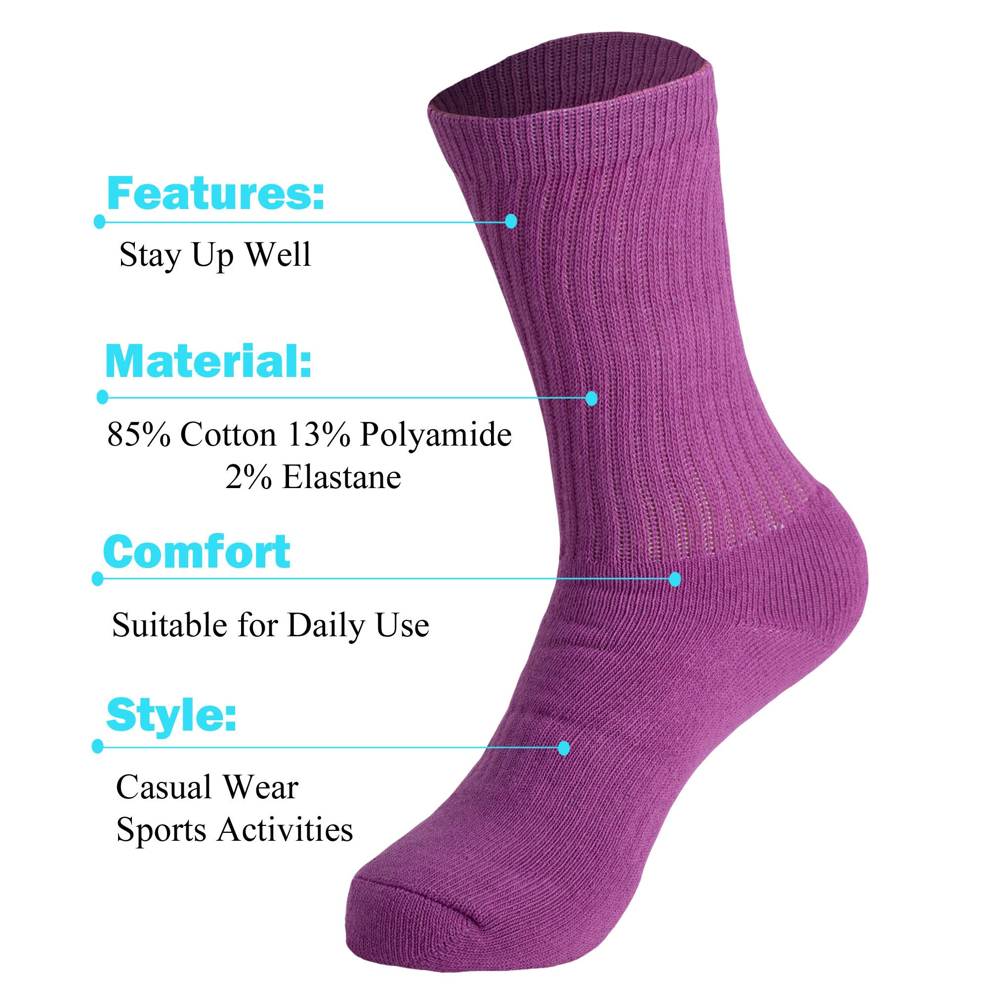 All-Day Freshness: Cotton Crew Socks for Women With their breathable cotton material, these socks help keep your feet dry and odor-free. Enjoy a fresh and comfortable feel from morning to night, thanks to the moisture-wicking properties of the fabric.
